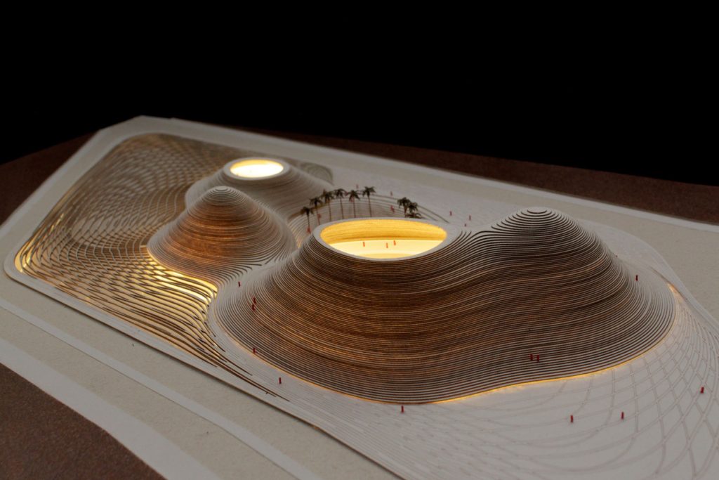The project site acts as a pristine viewpoint, offering a relatively good view of the Gulf of Oman while being surrounded by the area’s rugged, natural landscape. Considering the region’s climatic constraints, we focused intently on the project’s volume, entry method, and openings.