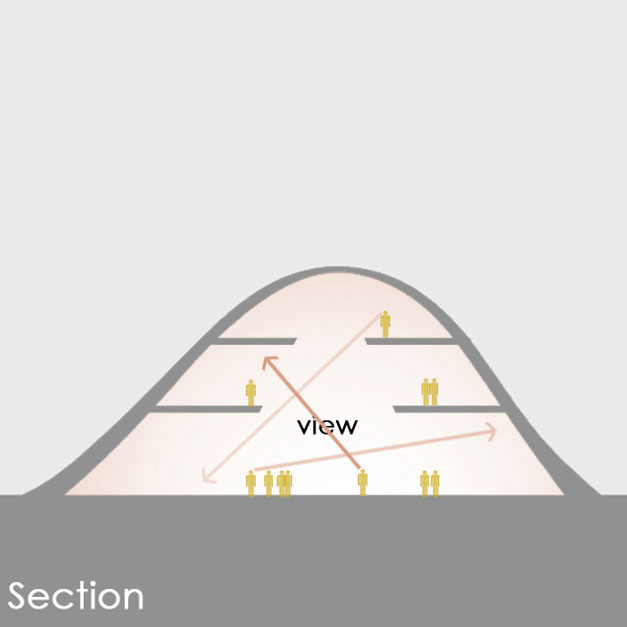 Due to strong, sand-laden winds, the design is aerodynamic, utilizing narrow windows to harmonize with the wind rather than oppose it. Furthermore, there is no distinct entry point at ground level. Instead, a public plaza is created on a lower plane, guiding the user and creating a unique and differentiated spatial experience.