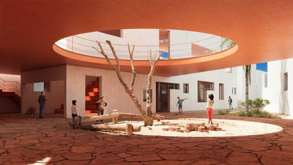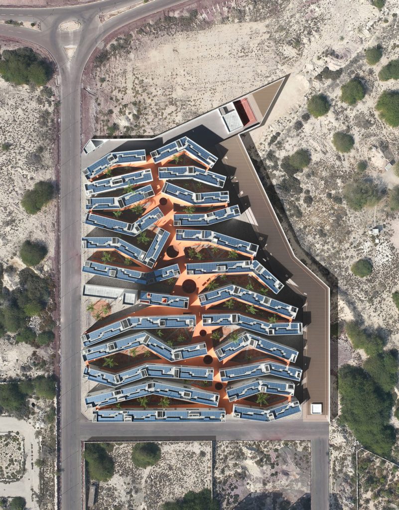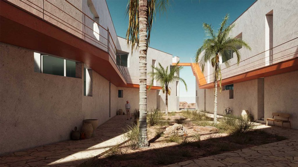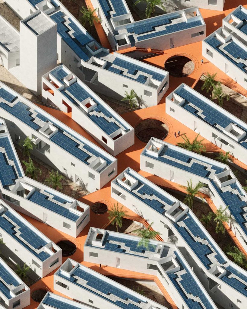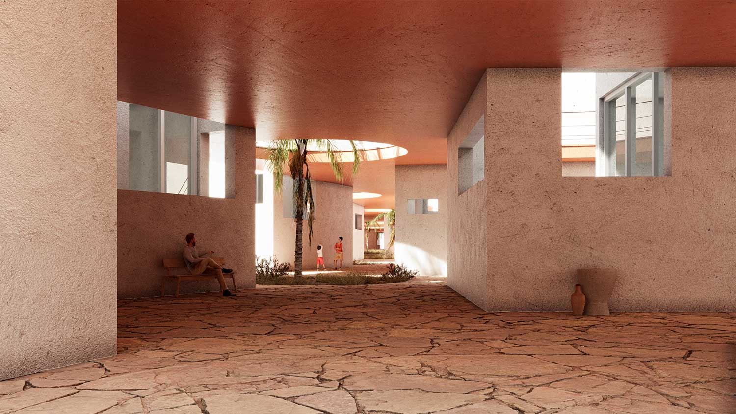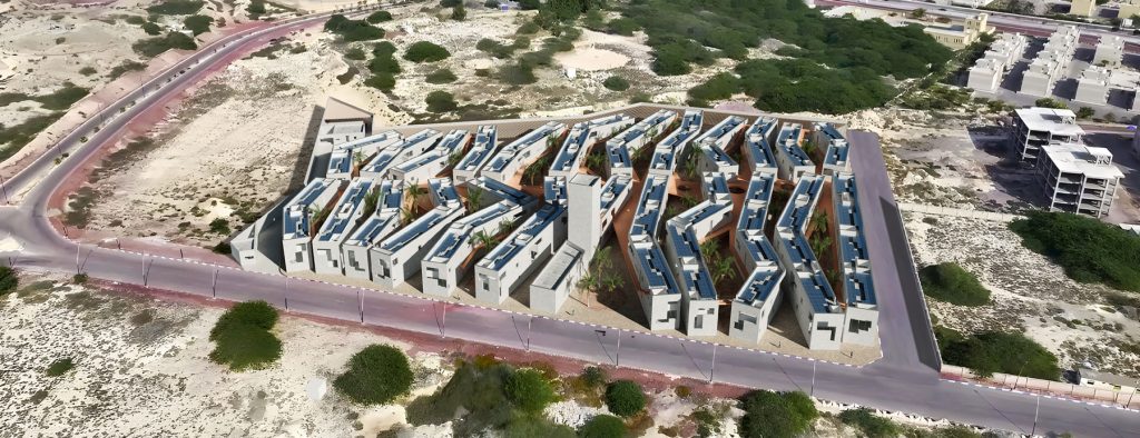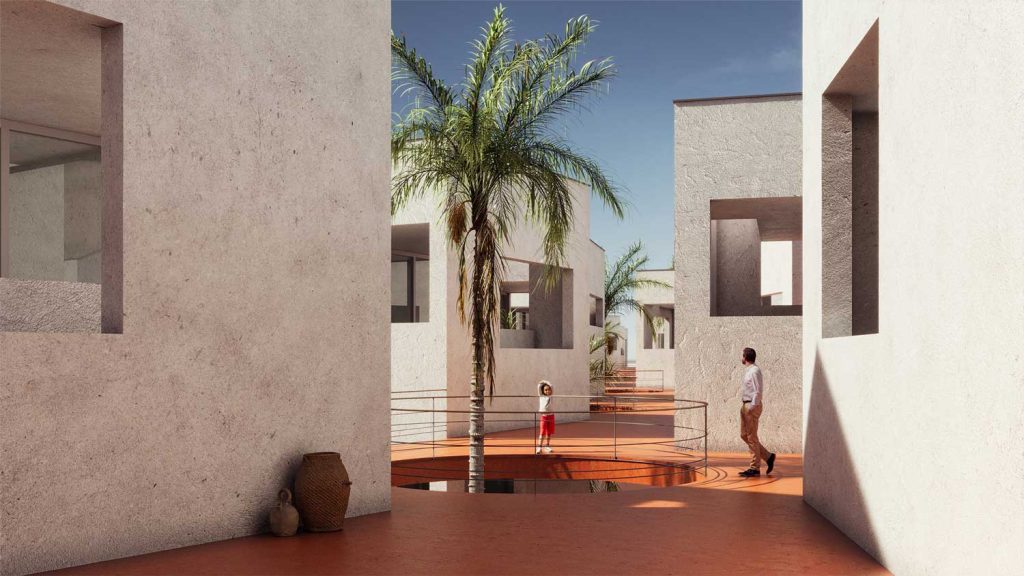We arranged the houses to be compressed in certain areas, creating shaded spaces reminiscent of alleyways in this climate. In other areas, these blocks are spaced apart to form open courtyards that transform the hot southern wind into a cool breeze.