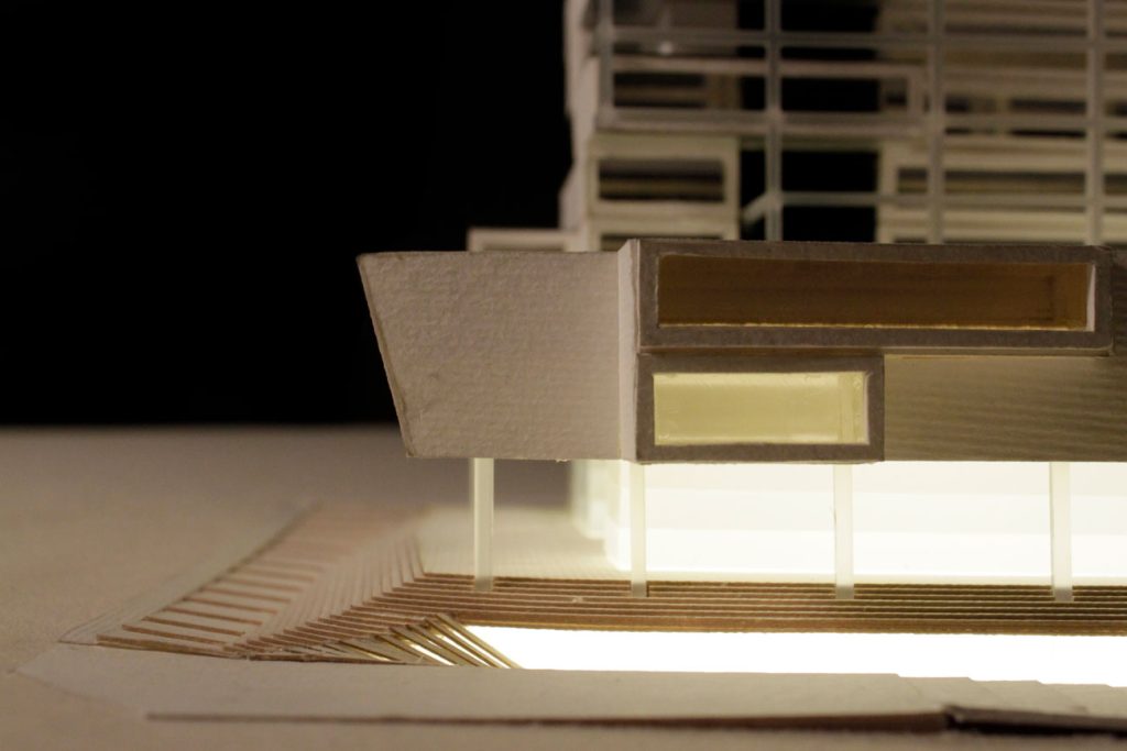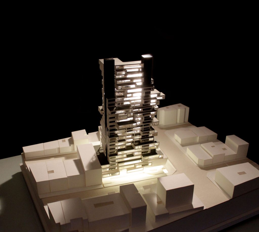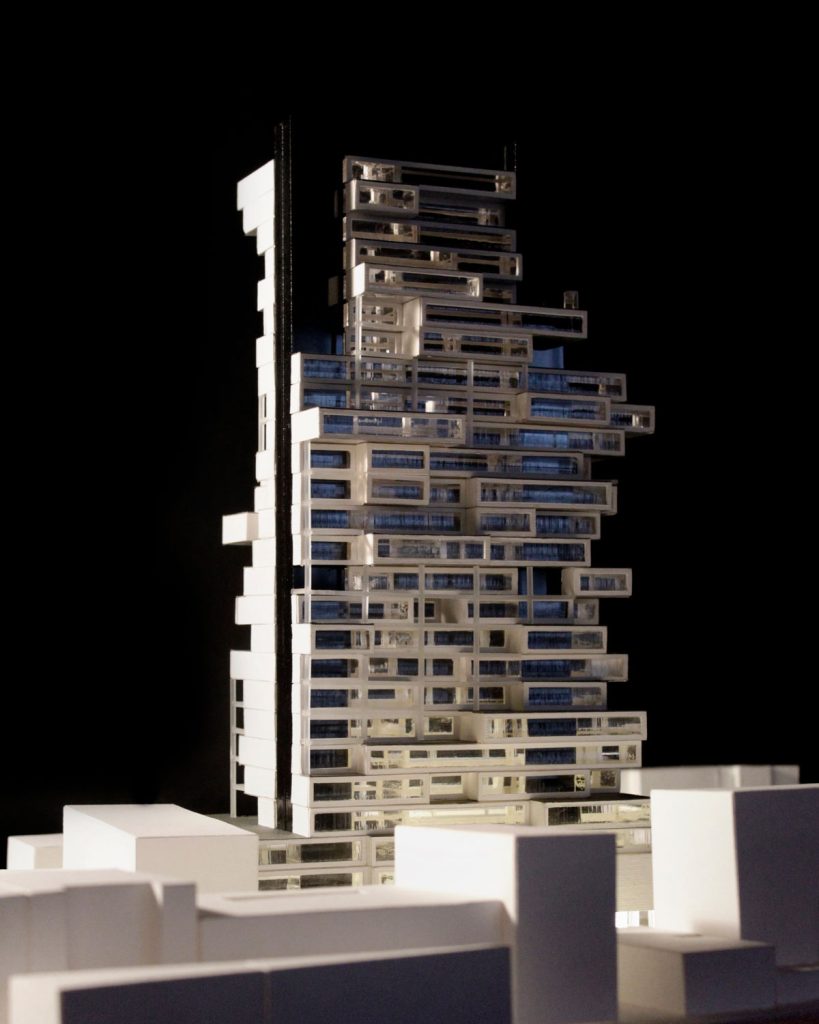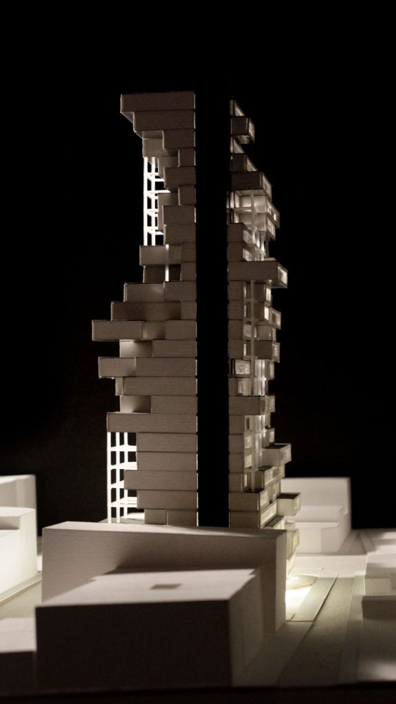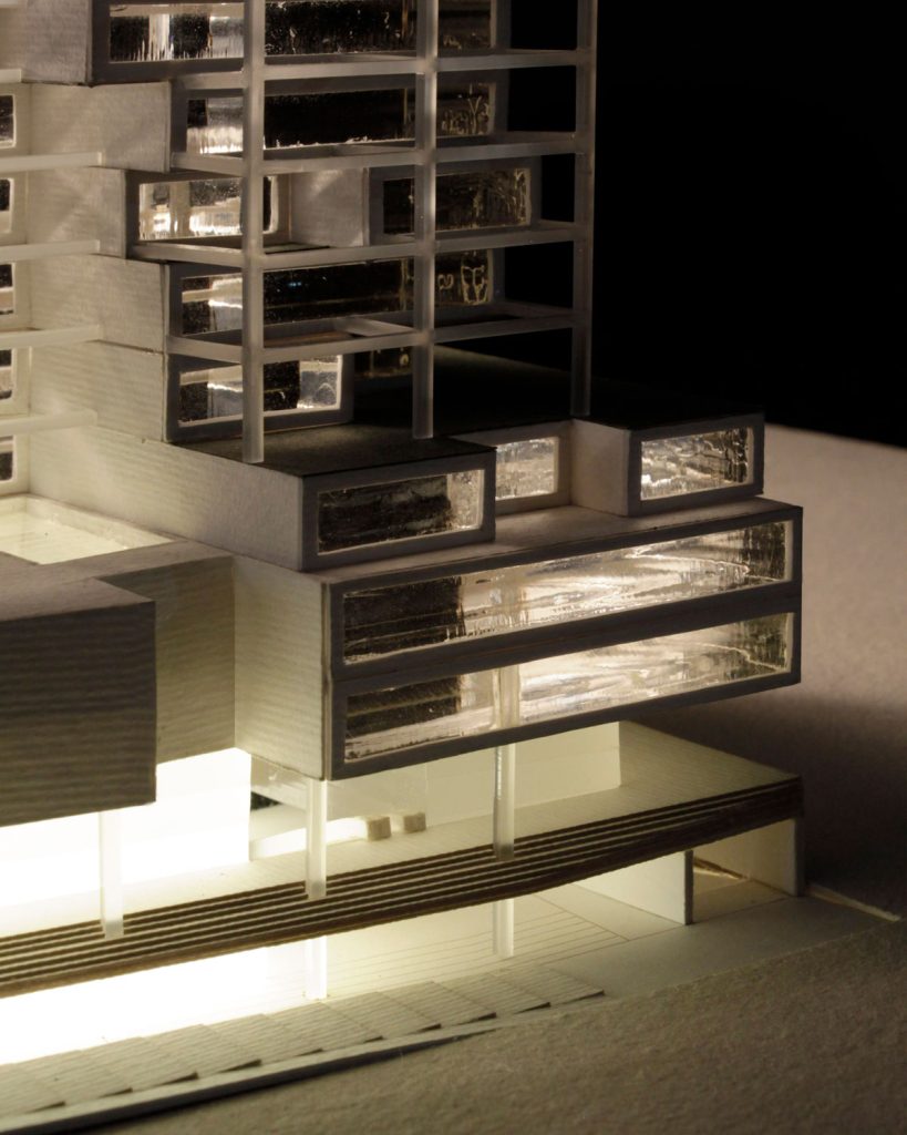 The lower floors of the tower have been transformed into commercial and public spaces, acting as a dynamic “urban deck” that interacts with the surrounding streets. The western part of the building has also been designed as an urban medium for the display of art and culture.