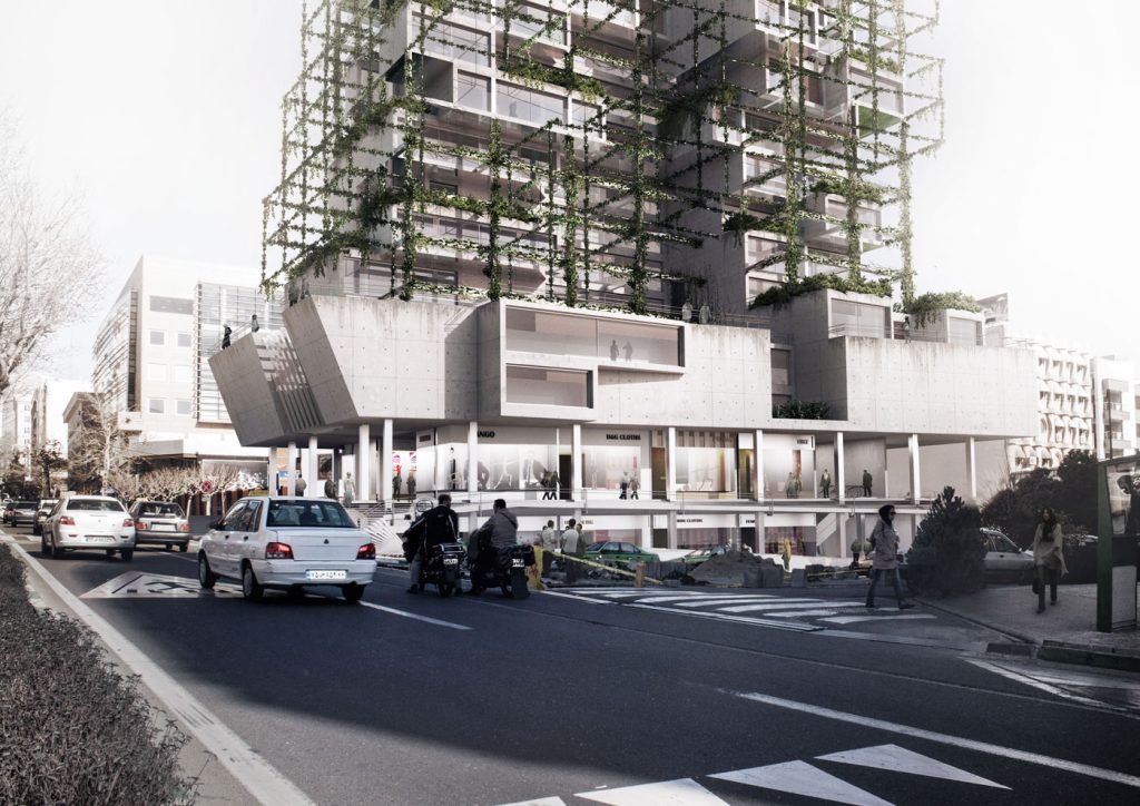 The design began with a simple concept: to create the largest vertical green space in Tehran. Instead of isolating the building from its environment, the design sought to establish a strong connection with important urban spaces, such as Valiasr and Africa streets, and Mellat Park.