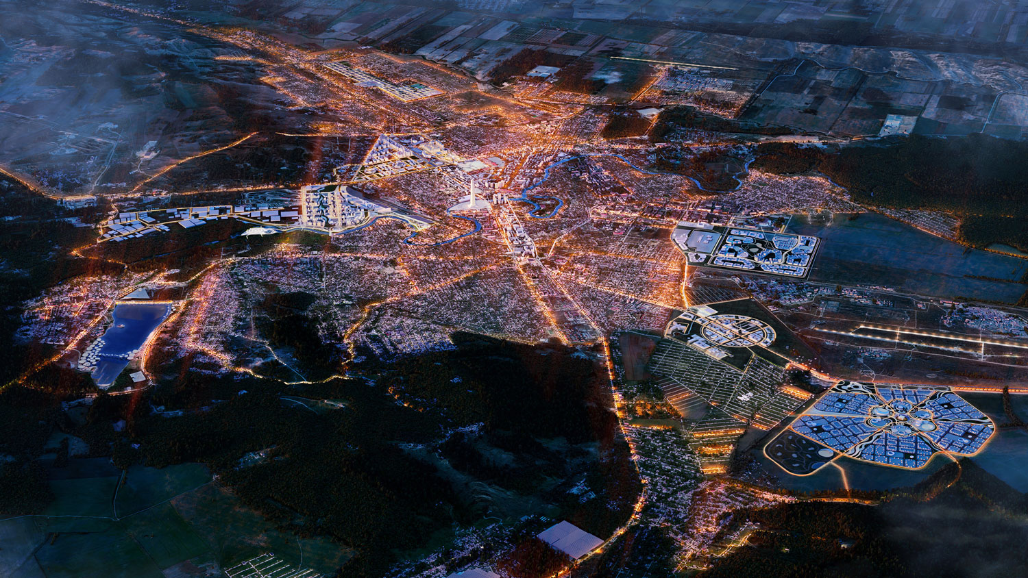 - The Integration of Nature and Technology: A “smart city” is created by leveraging the region’s unique natural potential. In this plan, new urban structures and green spaces are integrated with an intelligent system to enhance the quality of life.