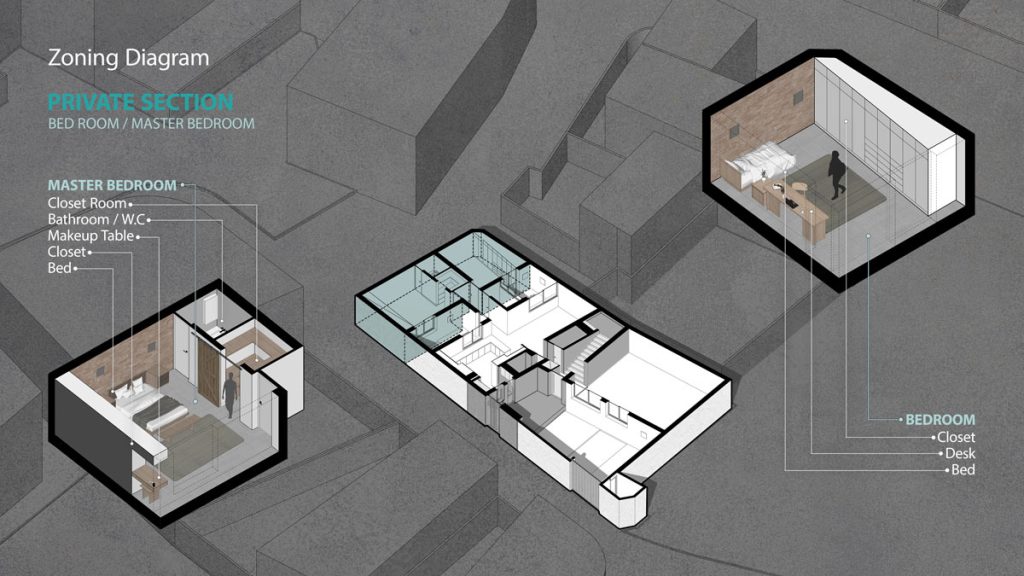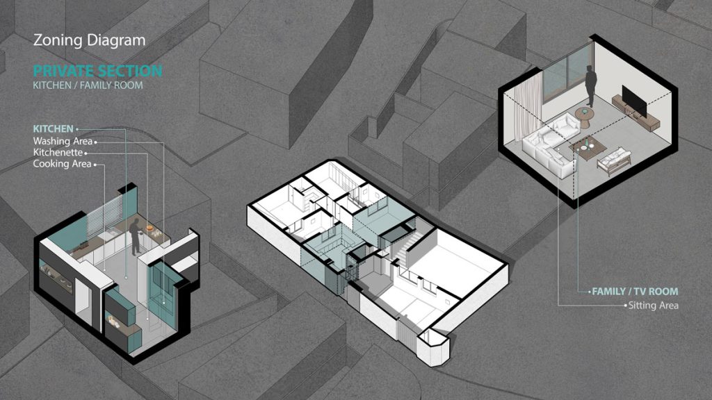 The house is designed without direct openings to the street, nourishing itself from within its courtyards. Additionally, the tall walls of the terraces turn them into private yards, completely shielding them from outside views. Ultimately, this home is a place of comfort and tranquility, providing a safe and inviting space for a family to live by honoring both privacy and climate.