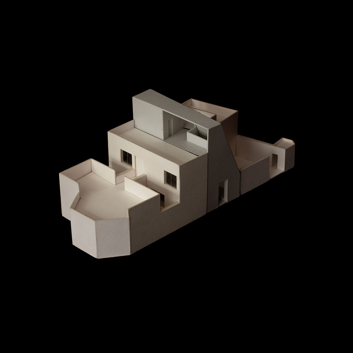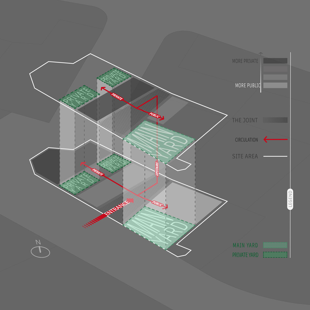 Our design process began by reinterpreting the plot’s irregular form. We divided the land into smaller sections, each holding the potential for a specific and unique space. This approach allowed us to separate the public and private areas, connecting them with a central communication space.