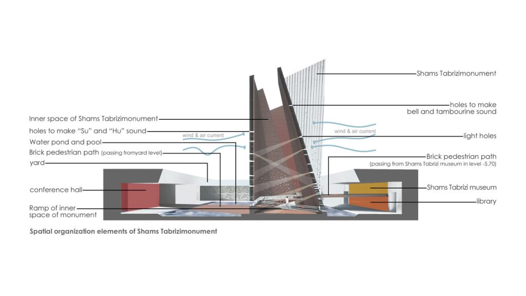 Shams is a formless truth found only through Rumi’s texts. The project’s body translates this very concept: a structure of Tabriz Brick, perforated with smart voids to inhale light and wind. This monument is not a static form but a living, pneumatic mechanism. The Tabriz wind, passing through “throat-like” elements embedded in the walls, produces a dual sound: a whistle and a hum, culminating in “Sohoot”—the sound of silence.
