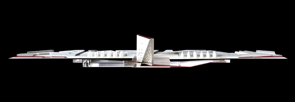 The interior space is a metaphor for the “Sama” dance. Mechanical mechanisms consisting of two rotating rings (allegories of Shams and Rumi) are driven by wind power, scattering a rapturous murmur resembling the sound of Daf drums and bells throughout the space. Here, architecture functions as a wind instrument; a cage of light and sound that immerses the observer in the seven stages of mysticism, from Unity (Tawhid) to Annihilation (Fana).