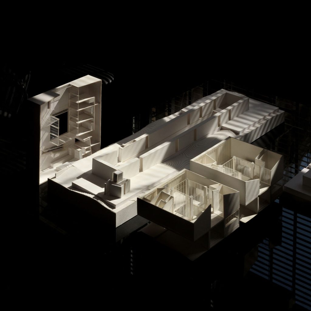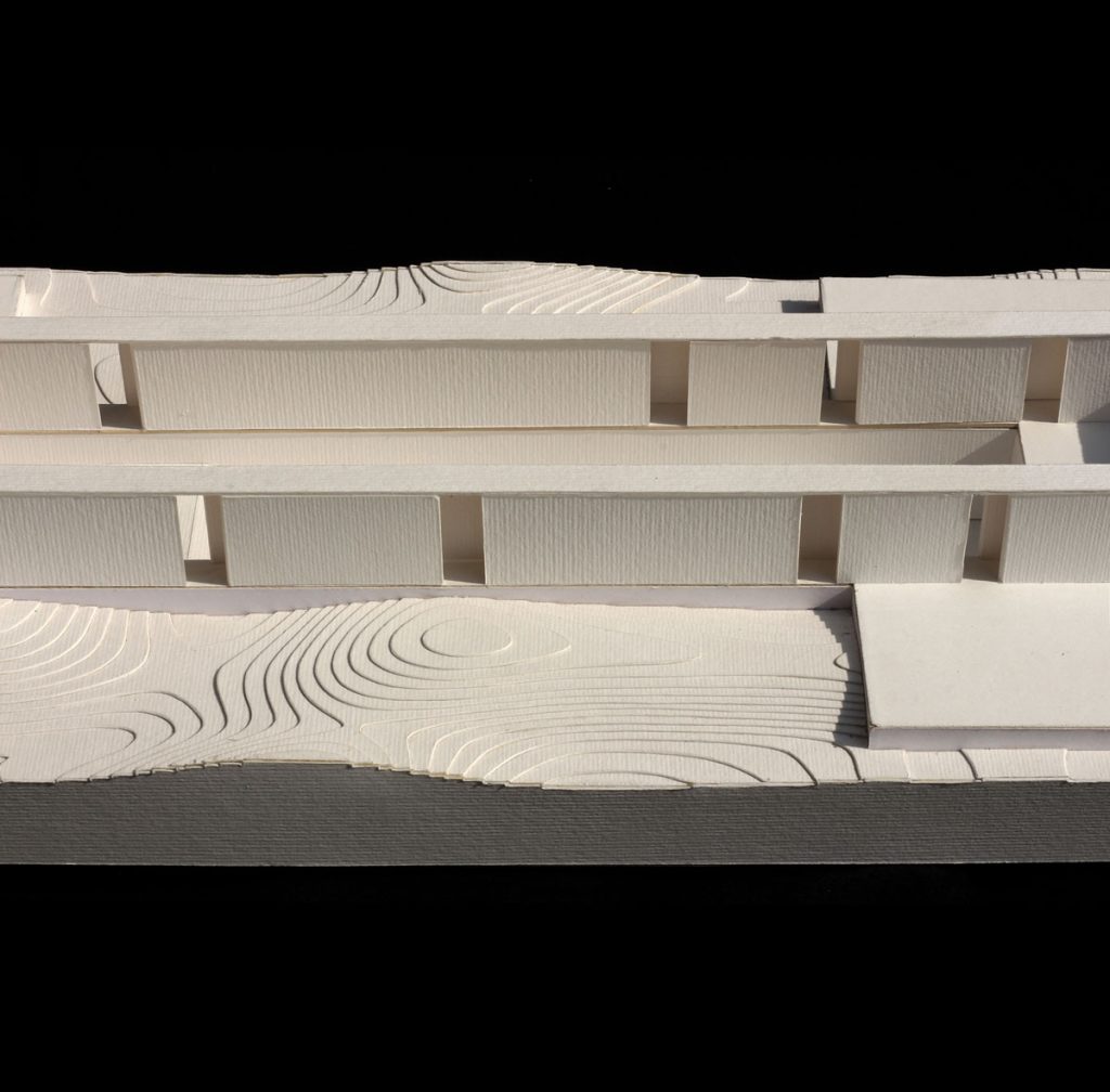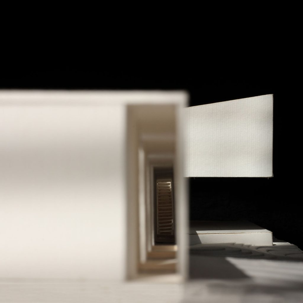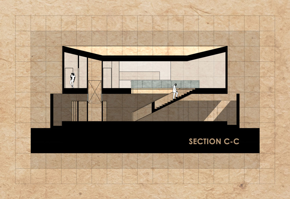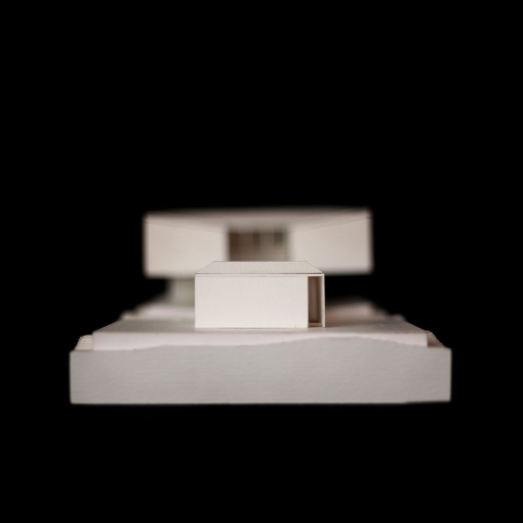 4. The Mass: A suspended volume, detached from the platform and resting on the wall. Instead of connecting directly to its surroundings, this volume looks inward, providing more private spaces for living.
